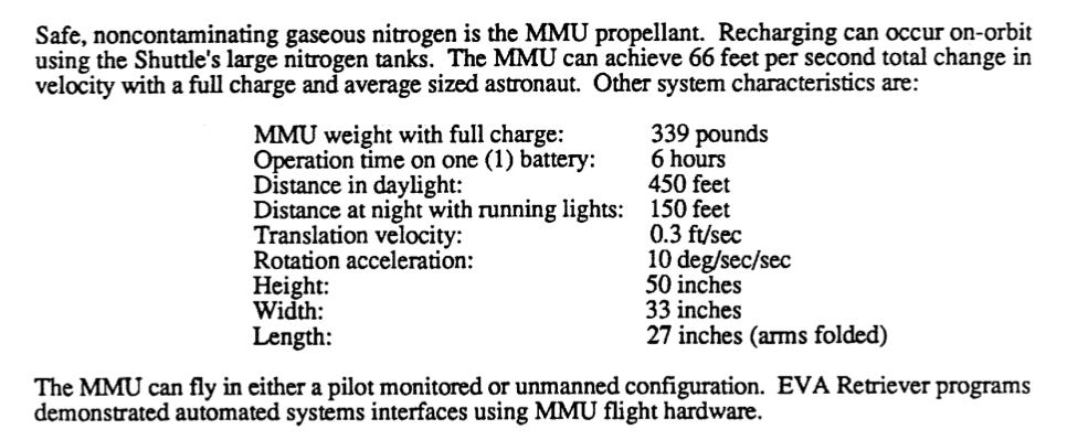 One can easily download the manual to the MMU and read the facts regarding this device and how it couldn’t have been of practical use. No wonder NASA only used it for three missions and moved on.