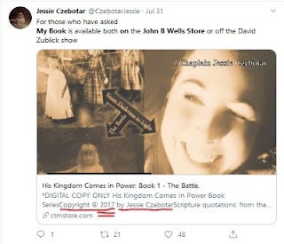 Although largely scrubbed from the internet, Jessie was using the 1899 picture of the three girls on her book cover till she was outed and replaced the image. Notice the copyright notice of 2017. That far back.